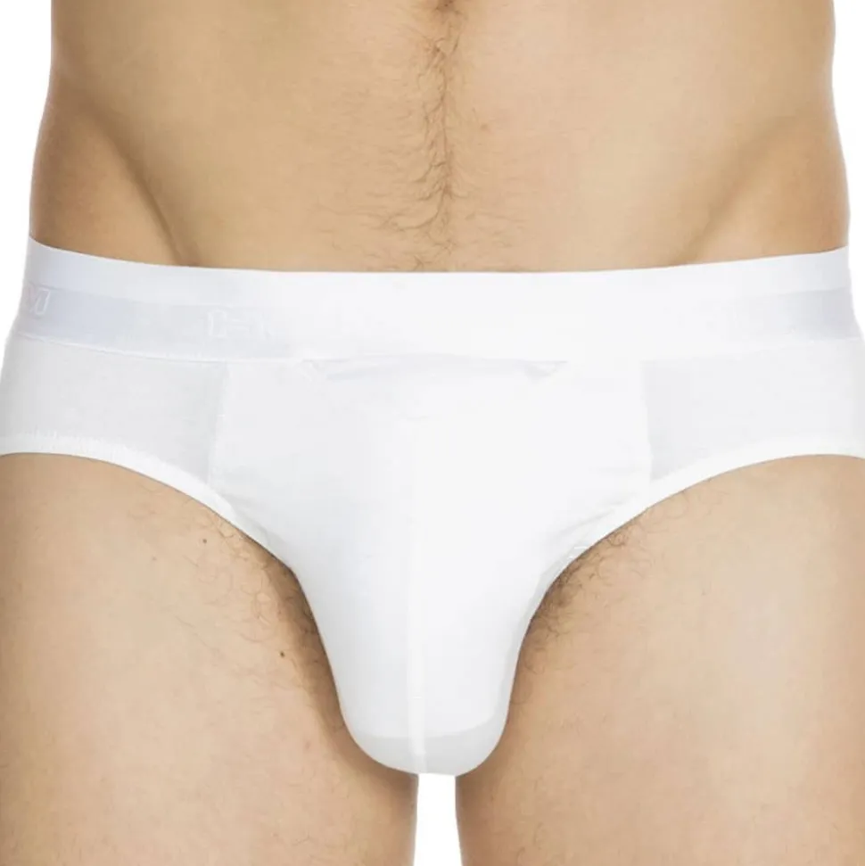 Slip en mélange doux et soyeux de coton et de modal. Coupe classique assurant confort et maintien. Ouverture horizontale HO1 brevetée par HOM, aussi pratique pour les droitiers que les gauchers. Ceinture élastique signée HOM.