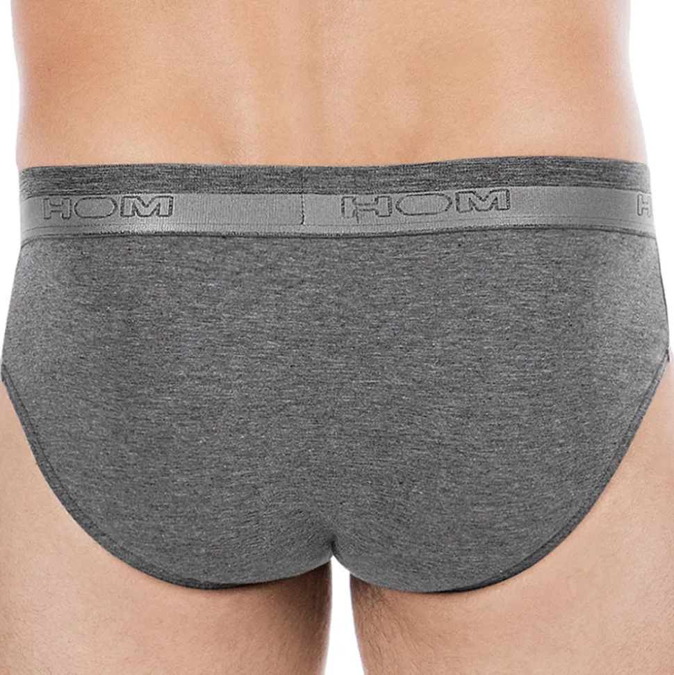 Slip en mélange doux et soyeux de coton et de modal. Coupe classique assurant confort et maintien. Ouverture horizontale HO1 brevetée par HOM, aussi pratique pour les droitiers que les gauchers. Ceinture élastique signée HOM.