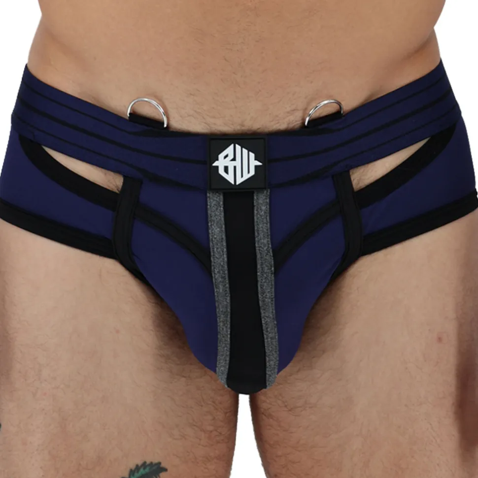 Slip sexy et sophistiqué en jersey épais et doux de qualité supérieure. Découpes à l’avant et à l’arrière qui mettent en valeur vos formes. Empiècement en mesh sur les fesses, laissant entrevoir la peau en transparence. Bandes contrastées soulignant le volume de la poche frontale. Ceinture élastique avec anneaux métalliques pour attacher un harnais body (vendu séparément). Patchs Breedwell en PVC.