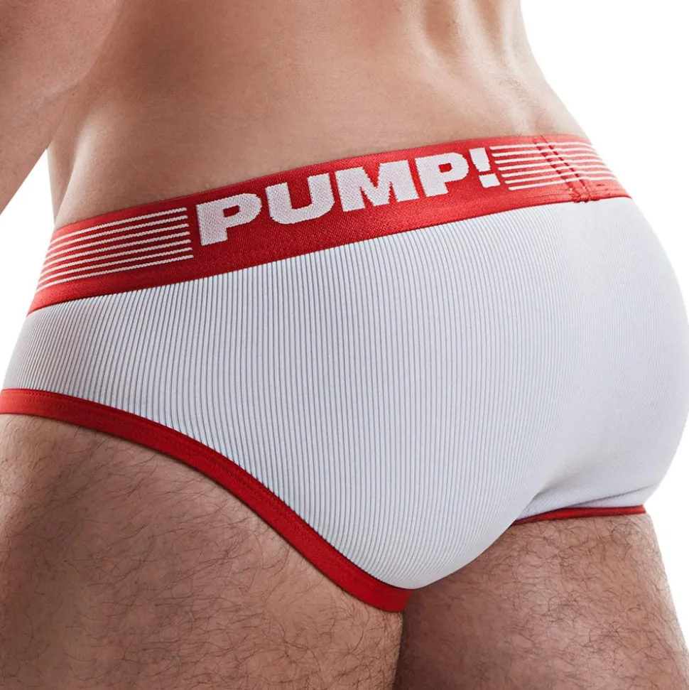 Slip taille basse, en microfibre côtelée très douce, respirante et confortable. Poche frontale en micro mesh super doux. Bordures et poche de couleur contrastée. Ceinture élastique signée PUMP!.