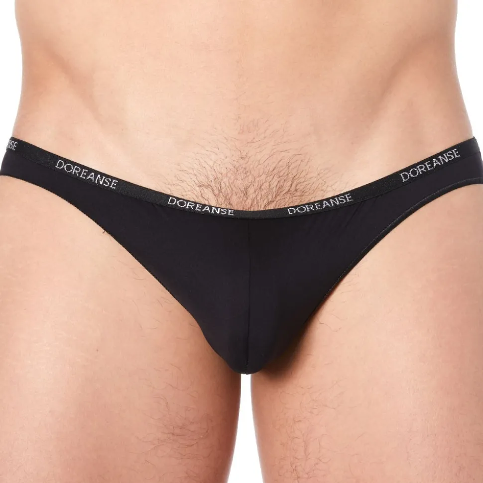 Slip en microfibre ultra douce, légère et soyeuse. Coupe mini ultra taille basse et très sexy. Fine ceinture élastique signée Doreanse.