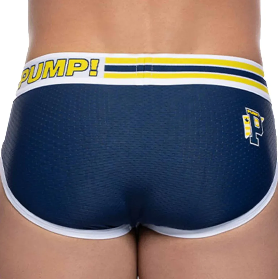 Slip en coton stretch doux et confortable. Poche frontale préformée et doublée en coton. Logo Pro-league sur la fesse droite. Empiècements en micro mesh respirant devant et derrière. Bordures des cuisses élastiquées. Ceinture élastique large signée PUMP!.
