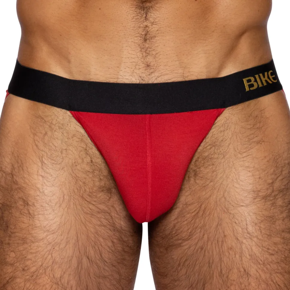 Slip sport et sexy en modal extensible super doux et confortable. Coupe taille basse très ajustée. Poche frontale doublée. Ceinture élastique signée BIKE en lettres dorées.