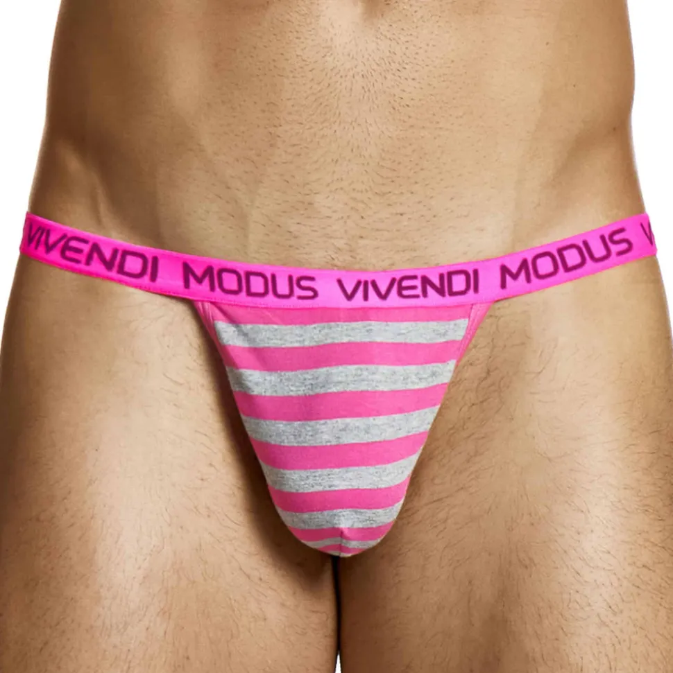 Slip taille basse en coton doux et confortable. Motif rayé élégant. Coupe tanga minimaliste. Poche frontale doublée. Ceinture élastique signée Modus Vivendi.