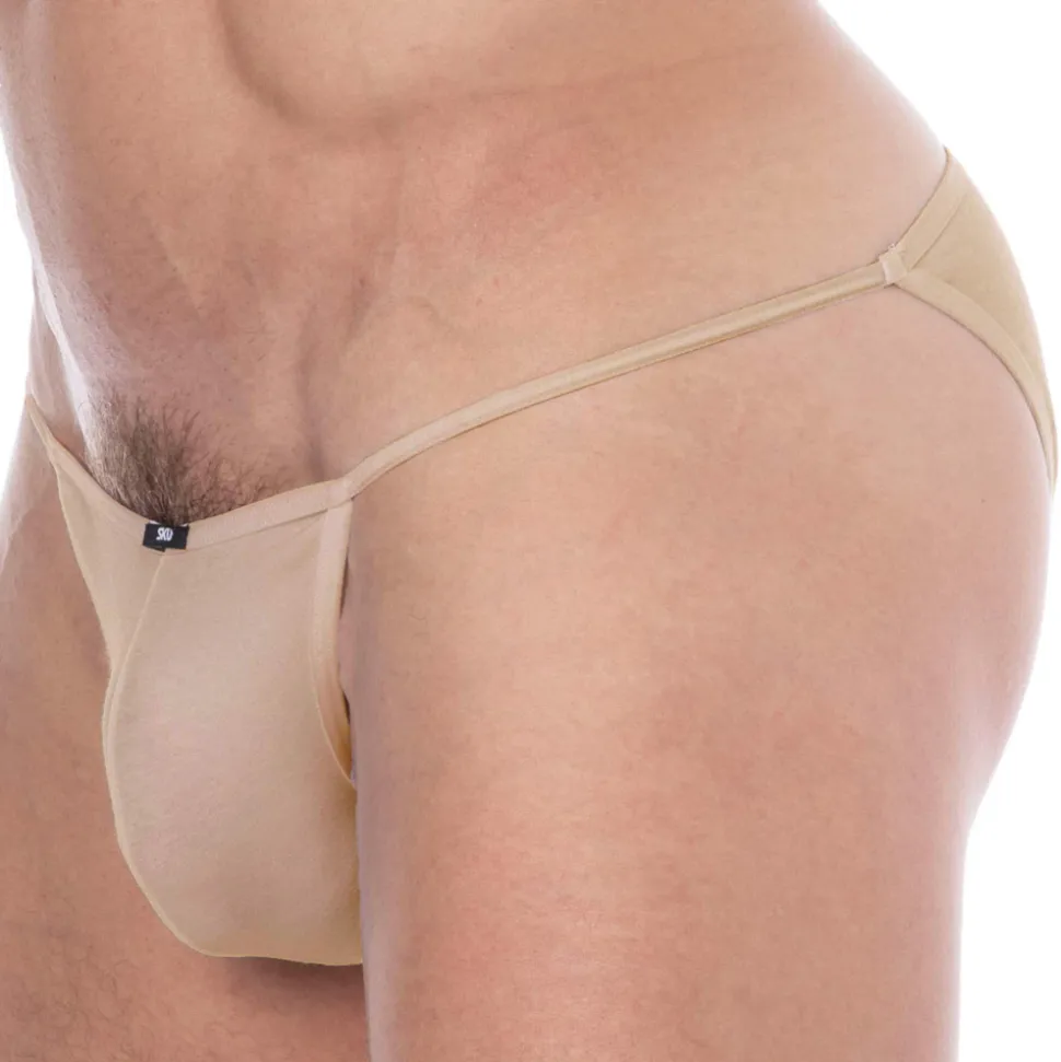Slip tanga sexy et minimaliste en coton premium doux et extensible de couleur unie. Coupe ultra taille basse et ajustée. Poche frontale non doublée. Etiquette SKU cousue sur la fine ceinture élastique.