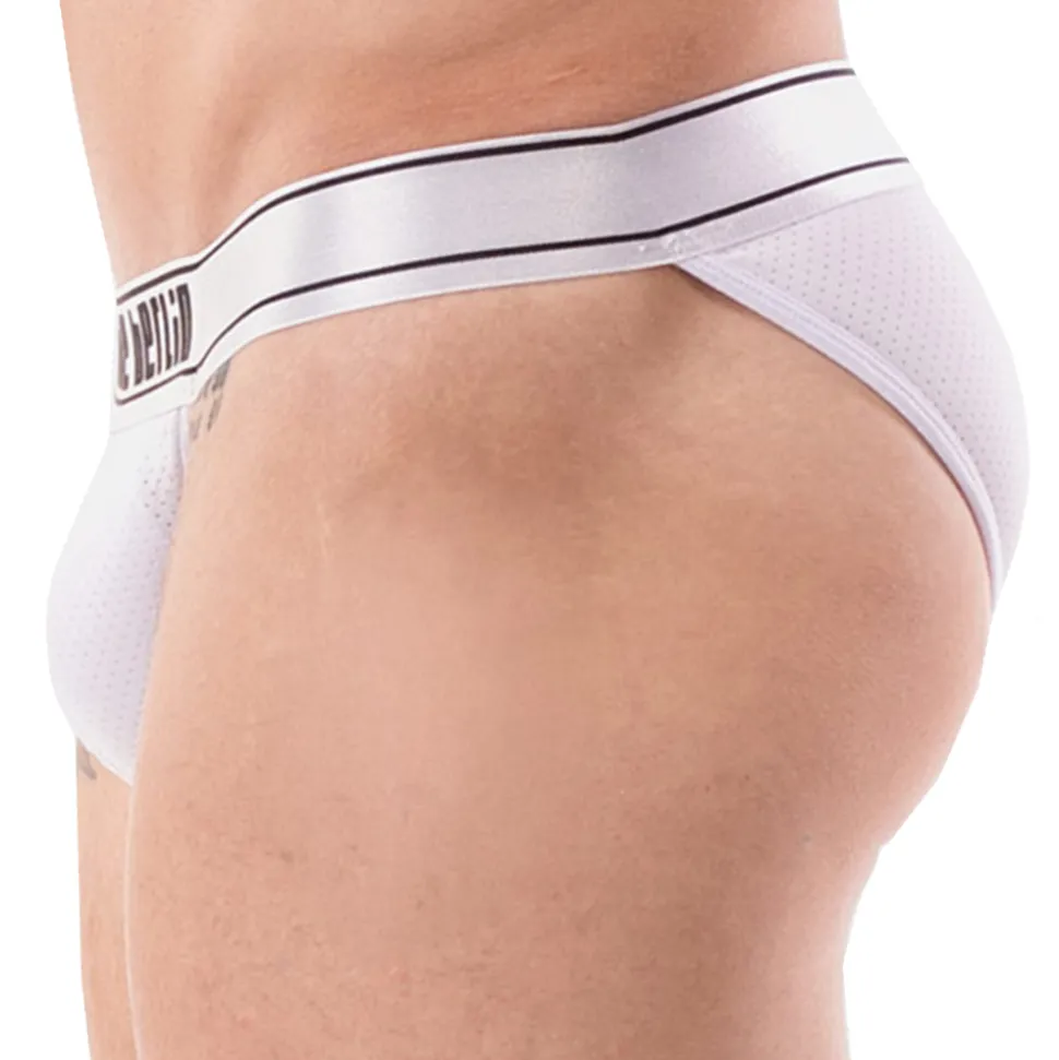 Slip tanga taille basse en mesh sport respirant et ultra confortable. Poche frontale non doublée. Ceinture élastique signée Barcode.