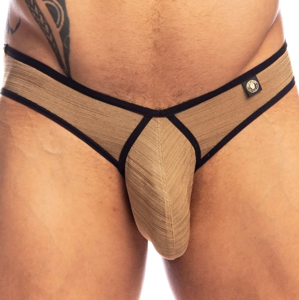 Slip sensuel en microfibre extensible, douce et confortable. Tissu doré aux reflets moirés très luxueux. Coupe avant très échancrée en V. Bordures de couleurs contrastée. Poche frontale ergonomique profonde. Etiquette L’Homme Invisible cousue sur la fine ceinture élastique.
