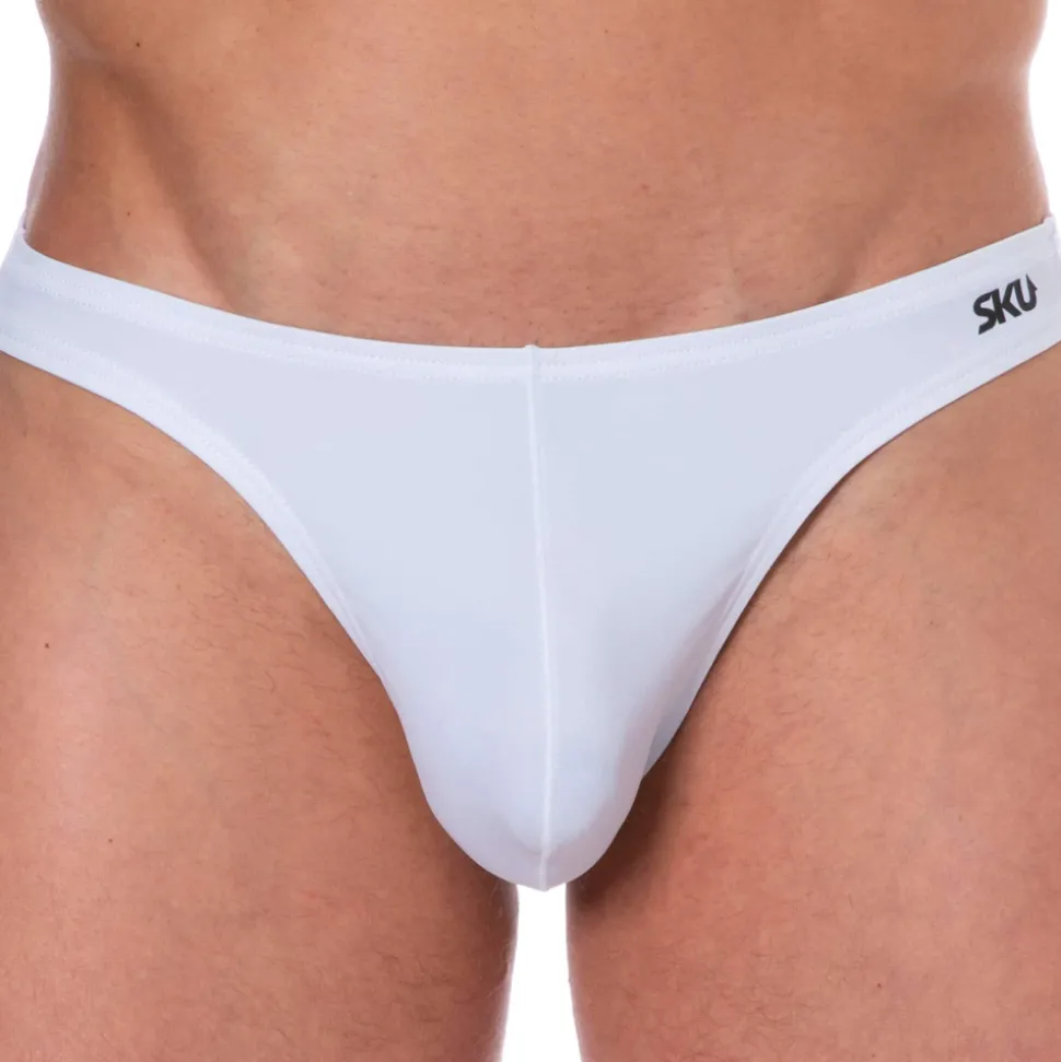 String de bain en microfibre séchant rapidement. Coupe taille basse très ajustée. Poche frontale non doublée. Logo SKU imprimé sur la hanche gauche. Fine ceinture élastique.