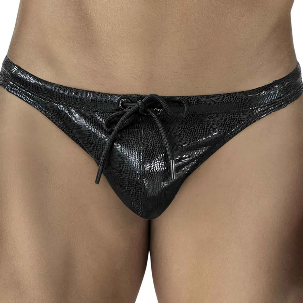 String de bain super taille basse en microfibre recouverte d' »écailles » étincelantes pour en saisissant effet reptile. Poche frontale doublée. Ceinture élastique recouverte avec cordon de serrage. Logo Clever en silicone à l’arrière.