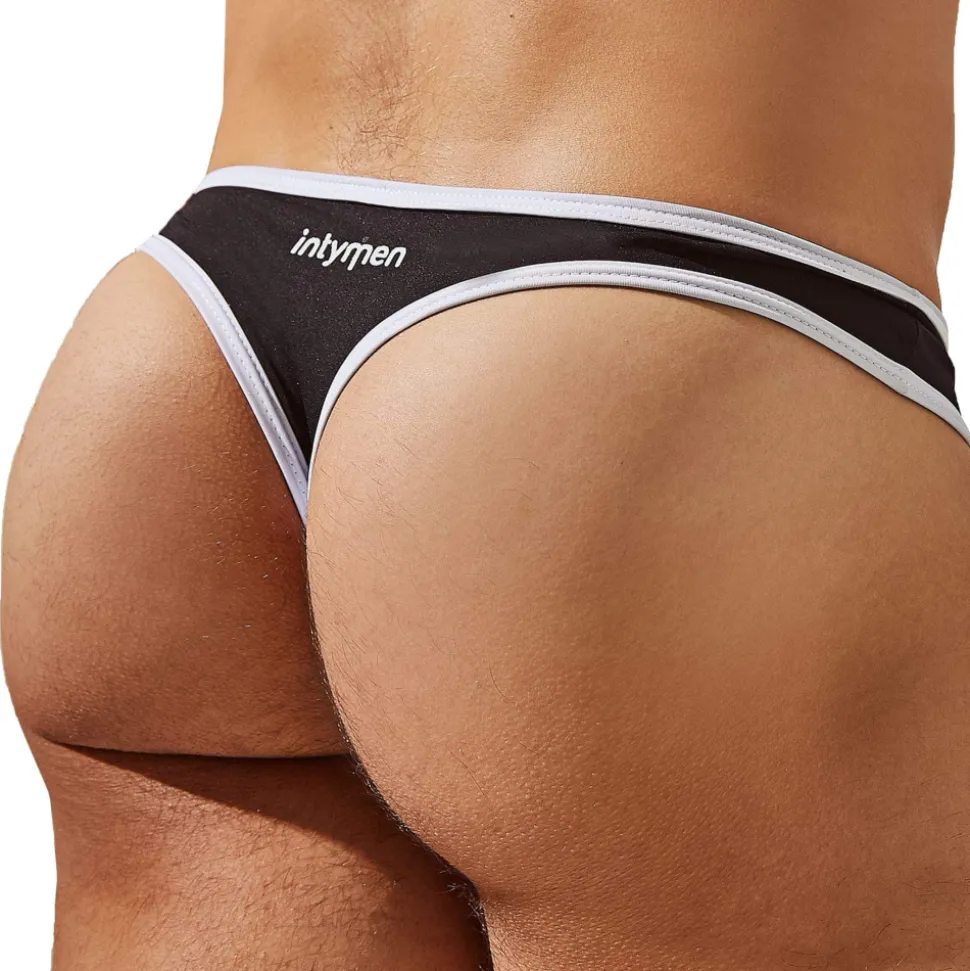 String en microfibre douce et légère. Coupe taille basse et minimaliste. Ceinture élastique fine et bordures de couleur contrastée.