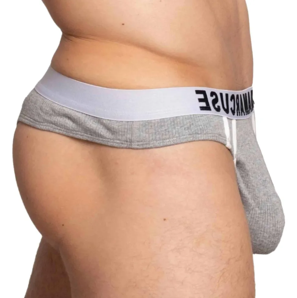 String confortable en tissu côtelé extensible, ultra-doux, léger et respirant. Coupe super taille basse et très ajustée. Deux bandes sport contrastées sur les côtés. Ceinture élastique signée Marcuse.
