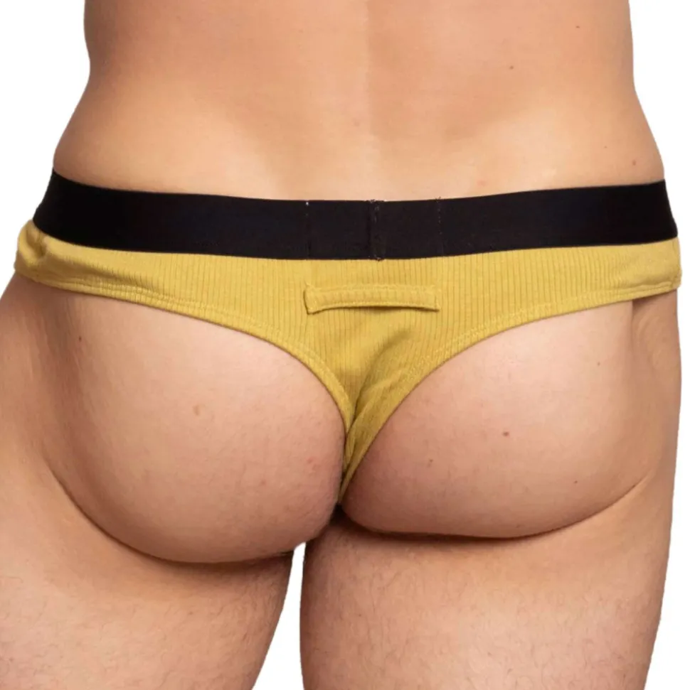 String confortable en tissu côtelé extensible, ultra-doux, léger et respirant. Coupe super taille basse et très ajustée. Deux bandes sport contrastées sur les côtés. Ceinture élastique signée Marcuse.
