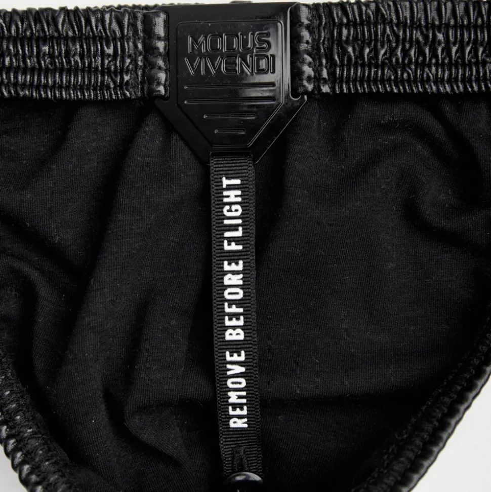 String sans ficelle ultra sexy et provocant intégrant une boule de geisha en caoutchouc (diamètre 3,5 cm) pour un plaisir anal secret. Microfibre imitant le cuir. Grande poche frontale préformée et doublée. Plaque métallique avec ruban Modus Vivendi à l’arrière.