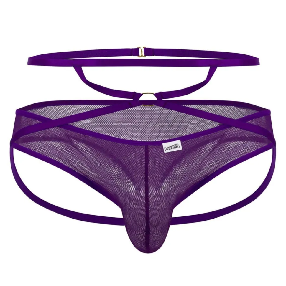 String très sexy en résille transparente. Fines bretelles autour de la taille et des fesses. Anneau métallique à l’avant et fermeture par crochet l’arrière.