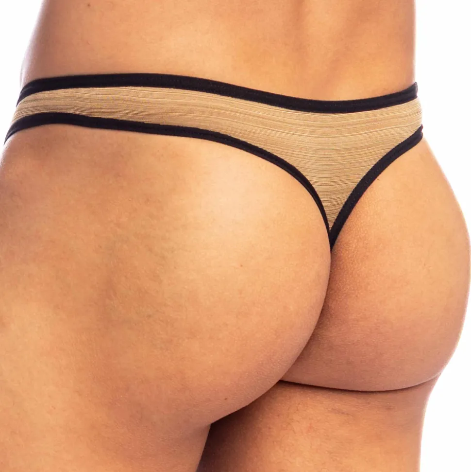 String sensuel en microfibre extensible, douce et confortable. Tissu doré aux reflets moirés très luxueux. Coupe avant très échancrée en V. Bordures de couleurs contrastée. Poche frontale ergonomique profonde. Découpe en Y sur les fesses. Etiquette L’Homme Invisible cousue sur la fine ceinture élastique.