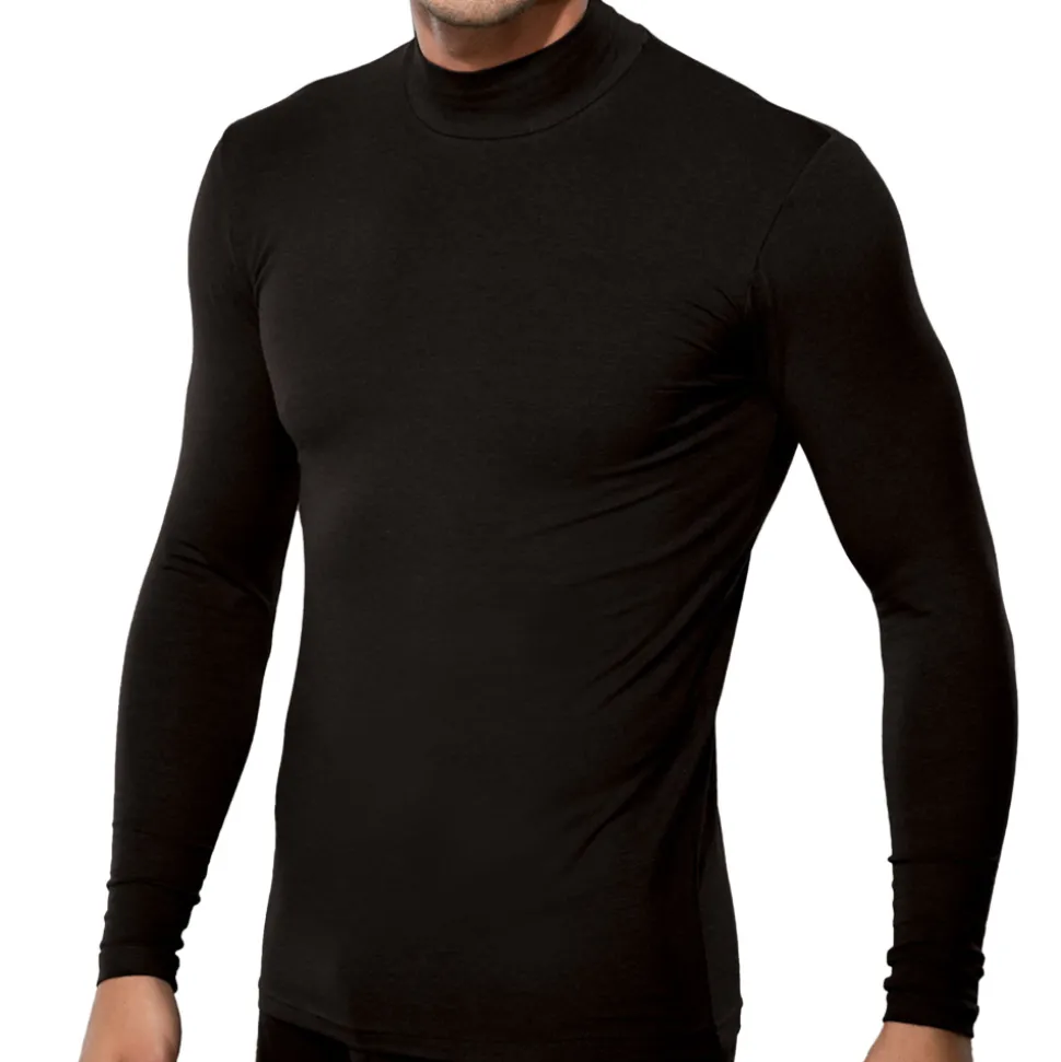 T-shirt de couleur unie en mélange très doux et soyeux de modal et de coton. Coupe confortable et ajustée. Manches longues. Col montant.