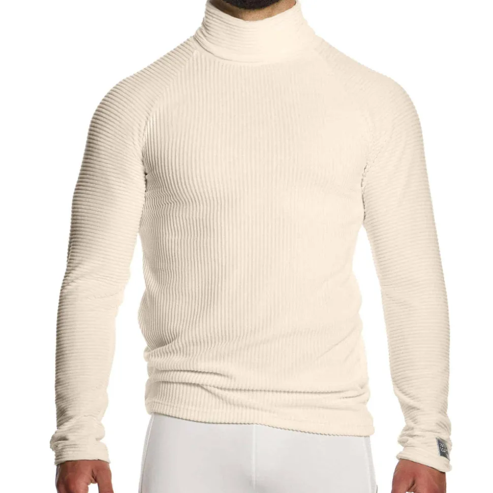 T-shirt luxueux et confortable en coton côtelé super doux avec un aspect velours. Coupe ajustée. Manches longues. Col roulé. Etiquette Modus Vivendi argentée à la taille.