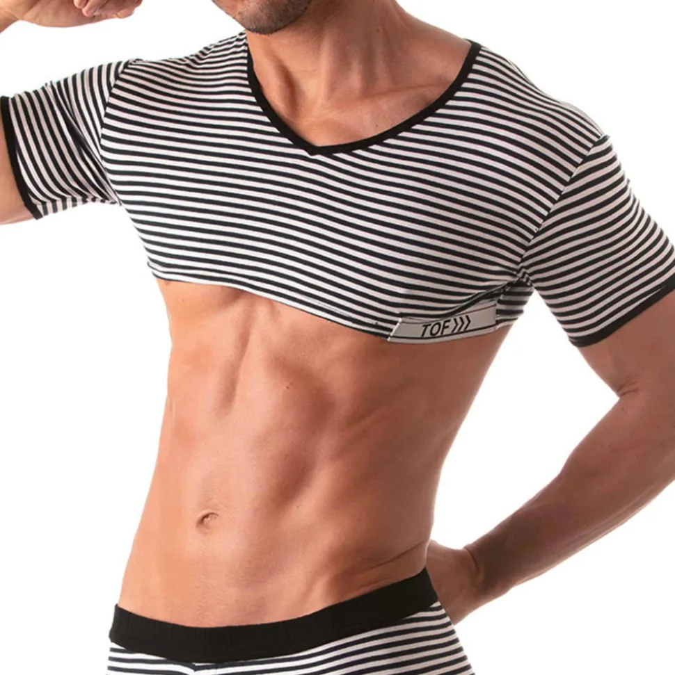 T-shirt sexy en coton stretch imprimé d’une élégante rayure façon marinière. Coupe très ajustée et raccourcie pour dévoiler vos abdos. Col en V. Bande élastique TOF Paris cousue sur le côté gauche. Fabrication française.