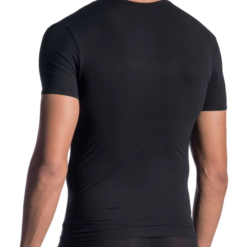 T-shirt col V en microfibre fine et légère, très agréable au contact de la peau. Coupe simple, élégante et très confortable. Logo Olaf Benz cousu sur la hanche gauche.