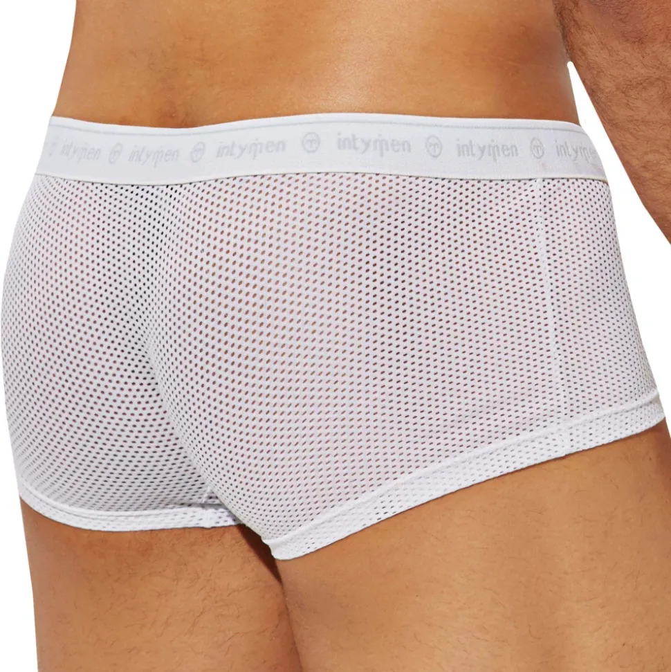 Boxer court en résille super extensible, douce et respirante. Coupe taille basse, originale et audacieuse. Poche frontale préformée en microfibre opaque non doublée. Processus de fabrication respectueux de l’environnement et certifié Oeko-Tex. Ceinture élastique logotypée.
