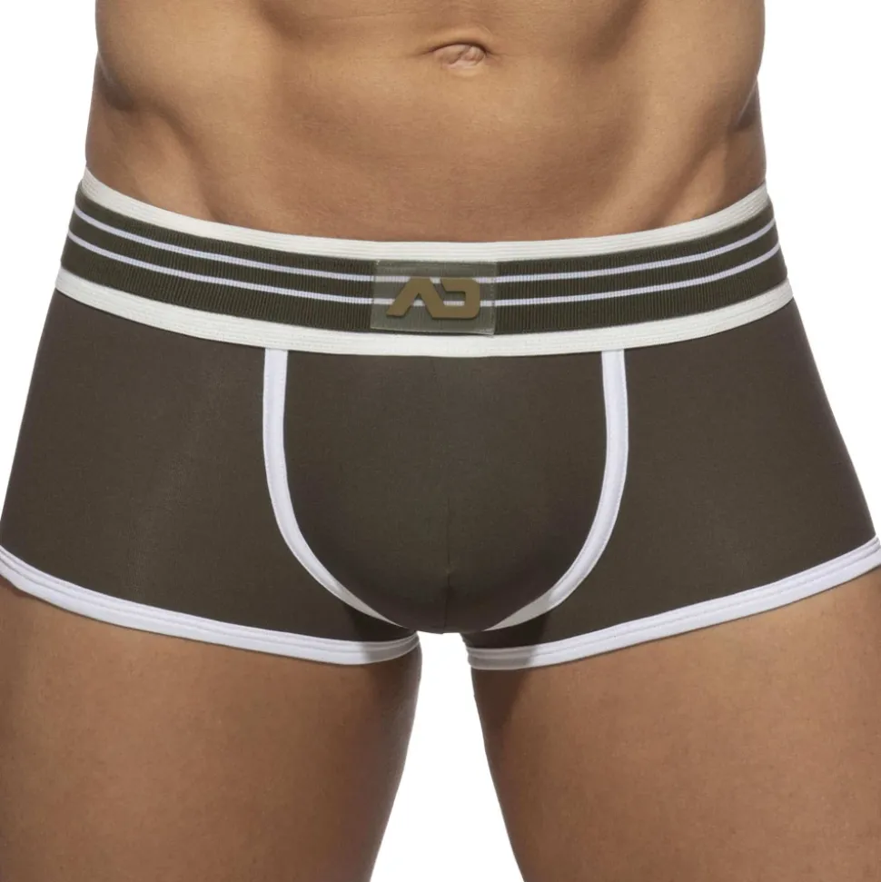 Boxer taille basse très ajusté en microfibre extensible fine, légère et légèrement transparente. Poche frontale non doublée de grande capacité. Bordures de couleur contrastée. Ceinture élastique épaisse avec logo AD en silicone.