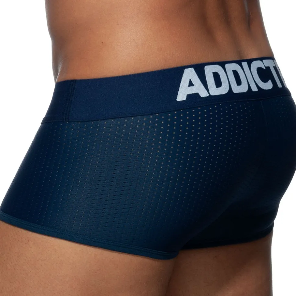 Boxer de couleur unie en mesh respirant, léger et confortable. Poche frontale push up extra-large pour un excellent maintien et une valorisation naturelle de votre masculinité. Ceinture élastique signée Addicted.