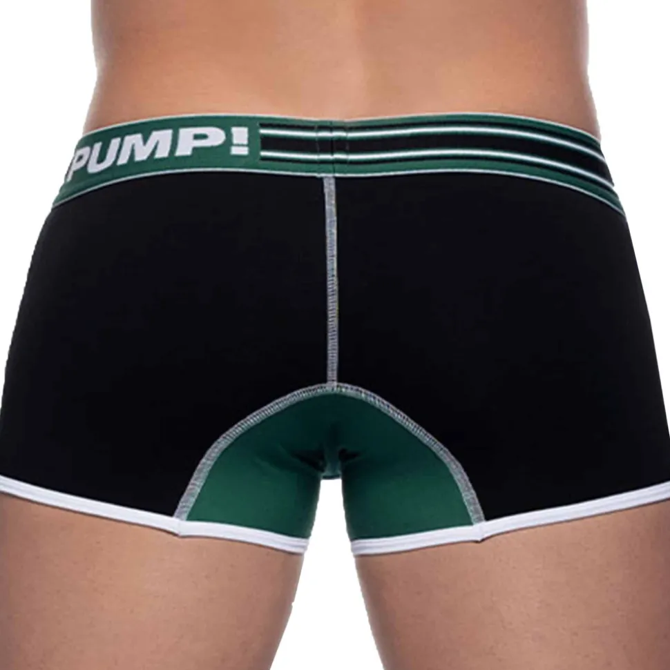 Boxer court en coton stretch doux et confortable. Poche frontale préformée en micro mesh doublé de coton. Logo Boy sur la cuisse gauche. Bordures des cuisses élastiquées. Ceinture élastique large signée PUMP!.
