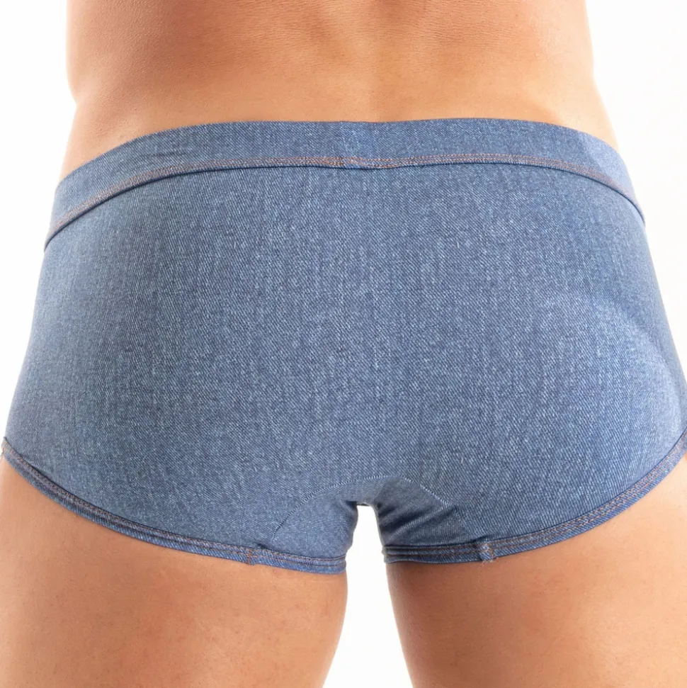 Boxer de bain court et ajusté en microfibre extensible, résistante et séchant rapidement. Imprimé denim et coutures contrastées pour imiter le jean. Tissu résistant au chlore et à l’eau de mer. Ceinture élastique avec cordon de serrage. Etiquette TOF Paris en silicone transparent. Fabrication française. Conseils d’entretien : laver en machine à 30°, ne pas sécher en machine, ne pas repasser.