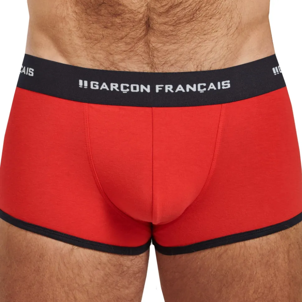 Boxer taille basse très ajusté en coton doux, souple et confortable. Belle ceinture Garçon Français et bordures de couleur contrastée. Fabrication 100% française.