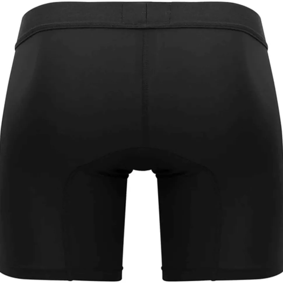 Boxer sport long et ajusté en microfibre extensible, douce et légère, de couleur unie. Poche frontale anatomique enveloppant naturellement votre intimité, pour un maintien très agréable et sensuel. Ceinture élastique signée Clever.