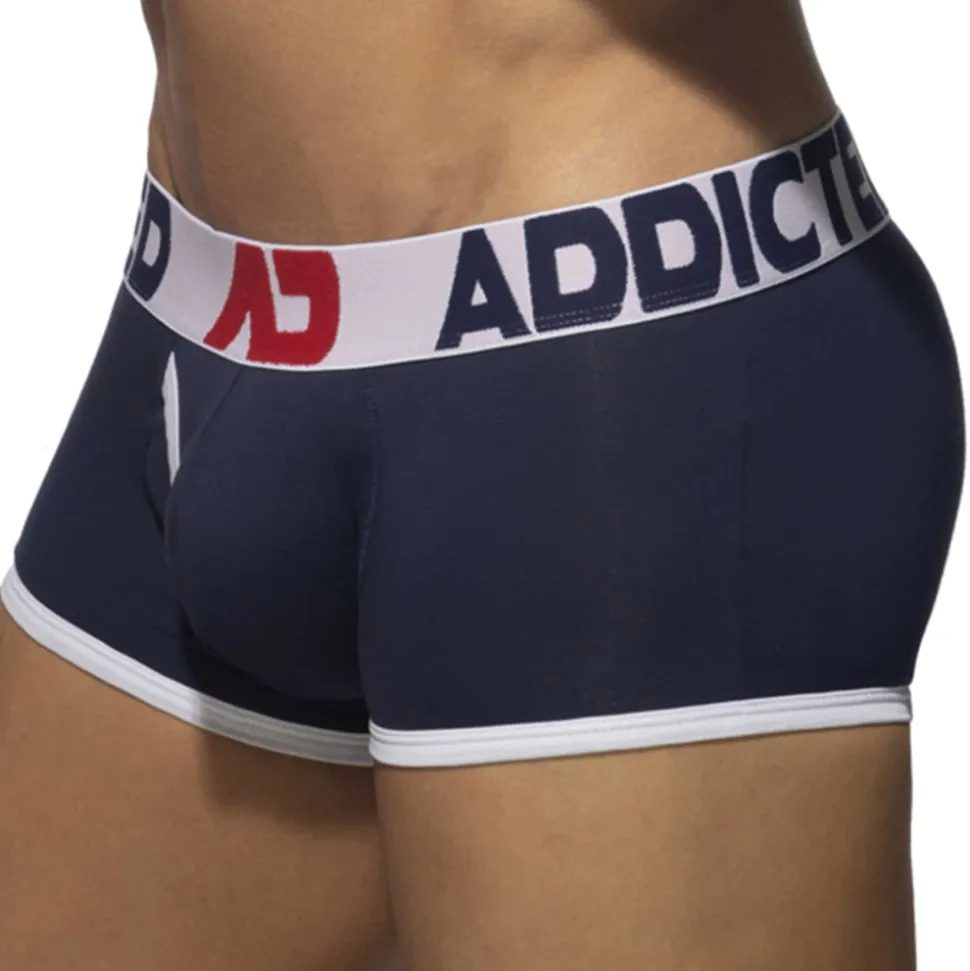 Boxer doux et confortable en coton extensible. Poche frontale doublée avec ouverture sur le côté droit pour un accès facile. Détails de couleur contrastée. Large ceinture élastique signée Addicted.