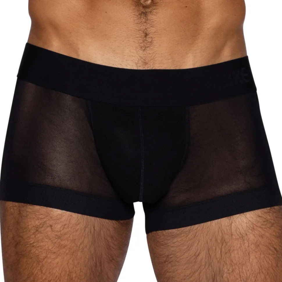 Boxer en résille super extensible, douce et respirante. Poche frontale préformée en microfibre opaque, assurant un support naturel et un grand confort tout au long de la journée. Large ceinture élastique signée BIKE.