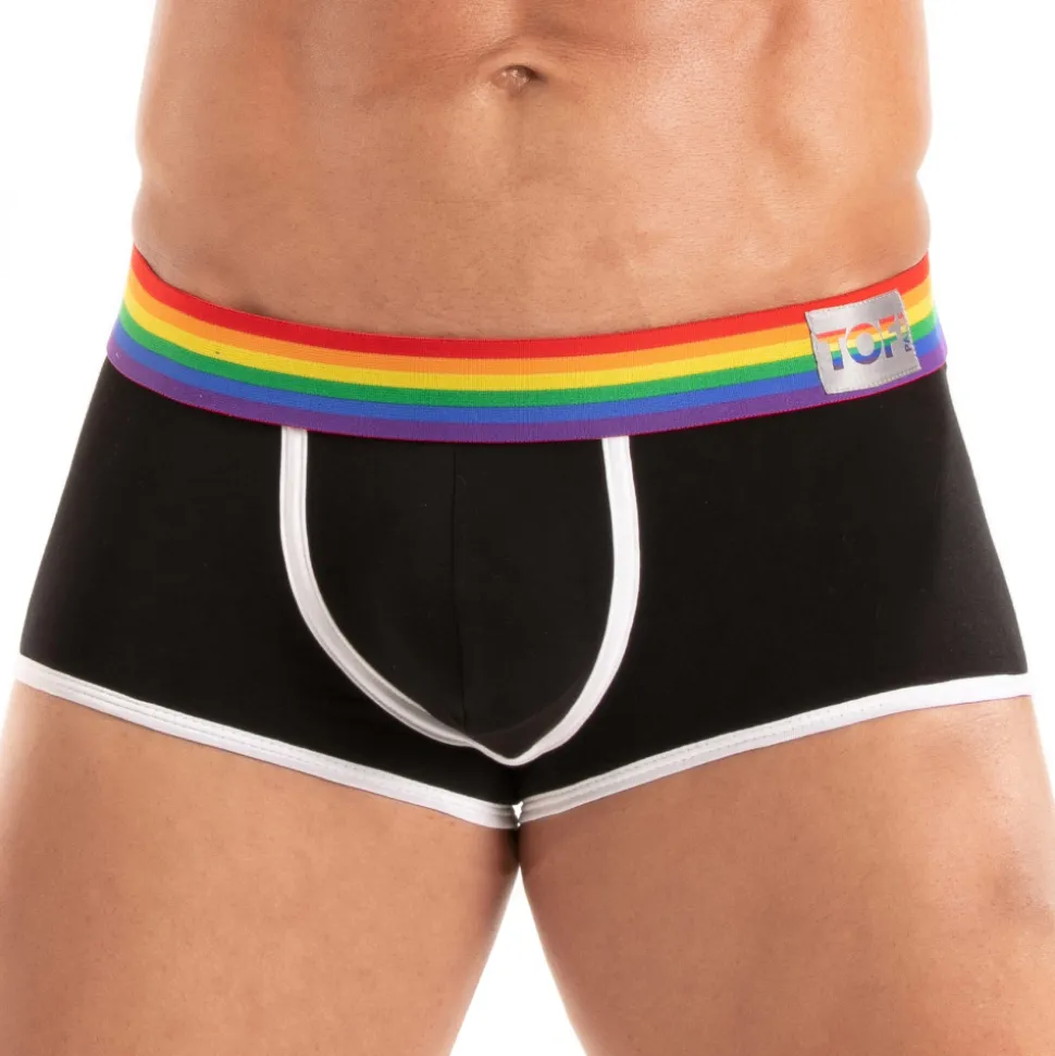 Boxer court en coton extensible très doux et confortable. Coupe taille basse, simple et élégante. Poche frontale non doublée. Bordures de couleur contrastée. Ceinture élastique aux couleurs de l’arc-en-ciel avec étiquette satinée TOF Paris. Fabrication française.