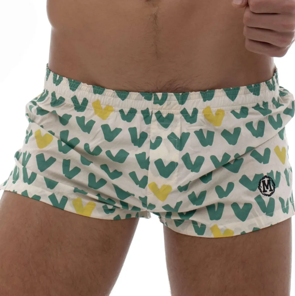 Caleçon en pur coton, léger et agréable à porter. Coupe taille basse ajustée. Imprimé V allover. La poche frontale intérieure en mesh apporte confort et maintien. Braguette factice. Ceinture élastique. Logo Marcuse brodé sur la cuisse gauche et à l’arrière.
