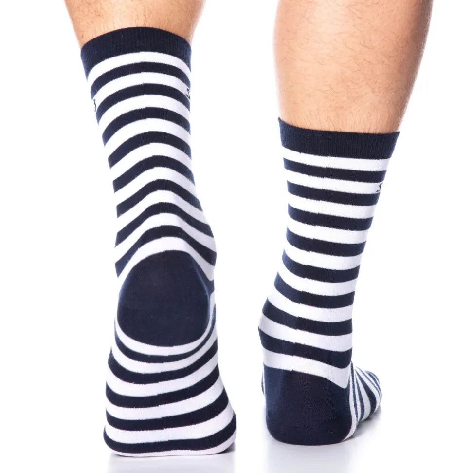 Chaussettes Basses Coton Marinière – Bleu Marine – Blanc
