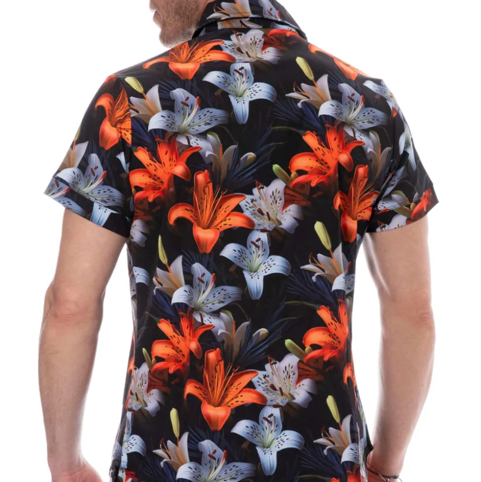 Chemisette en microfibre extensible, ultra douce et légère. Superbe imprimé tropical original et intense. Coupe cintrée et arrondie en bas pour un tombé parfait sur un short ou un pantalon. Fermeture 6 boutons.