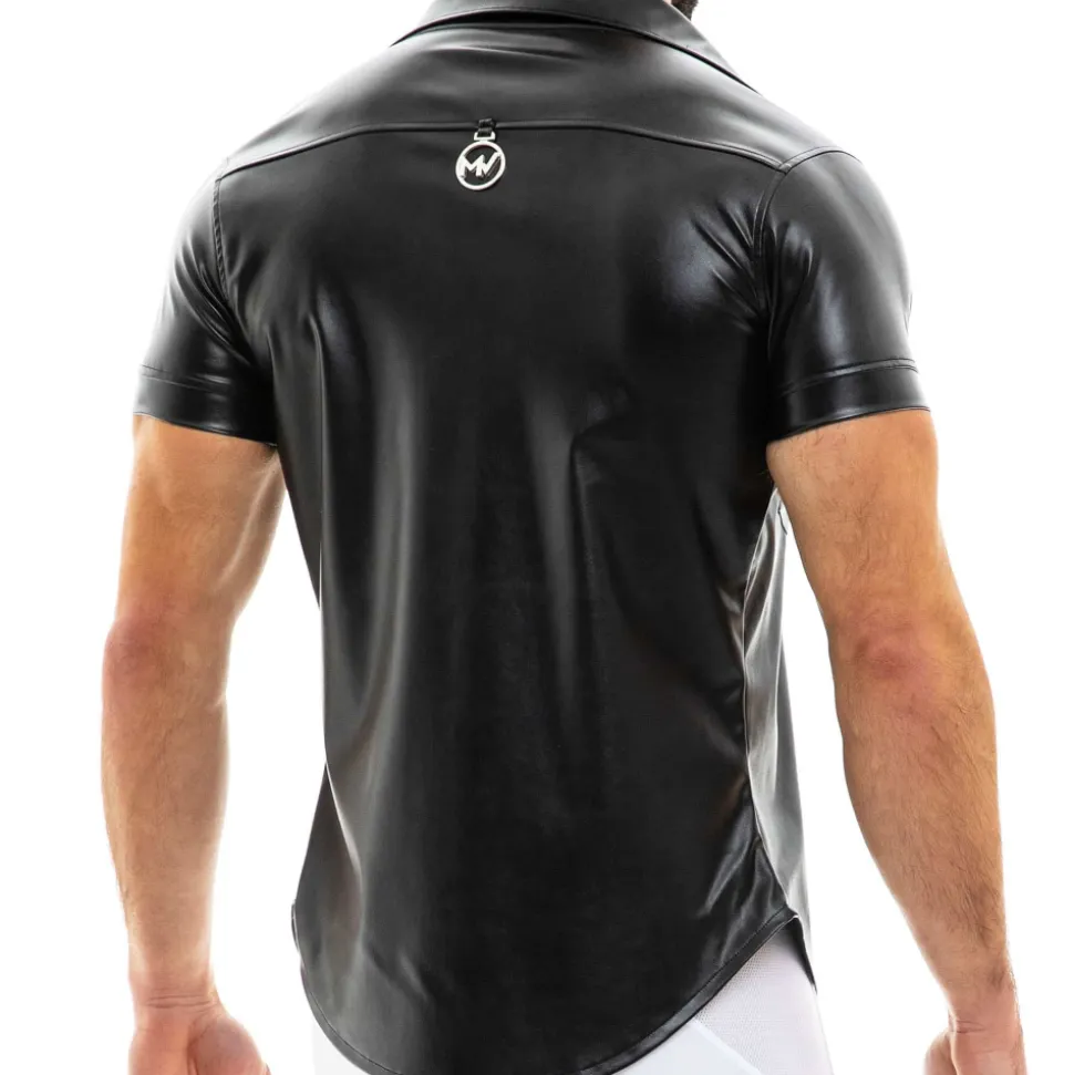 Chemisette très sexy et luxueuse en microfibre imitant le cuir. Coupe cintrée. Fermeture 6 boutons. 2 poches à rabat sur la poitrine. Logo métallique Modus Vivendi dans le dos.