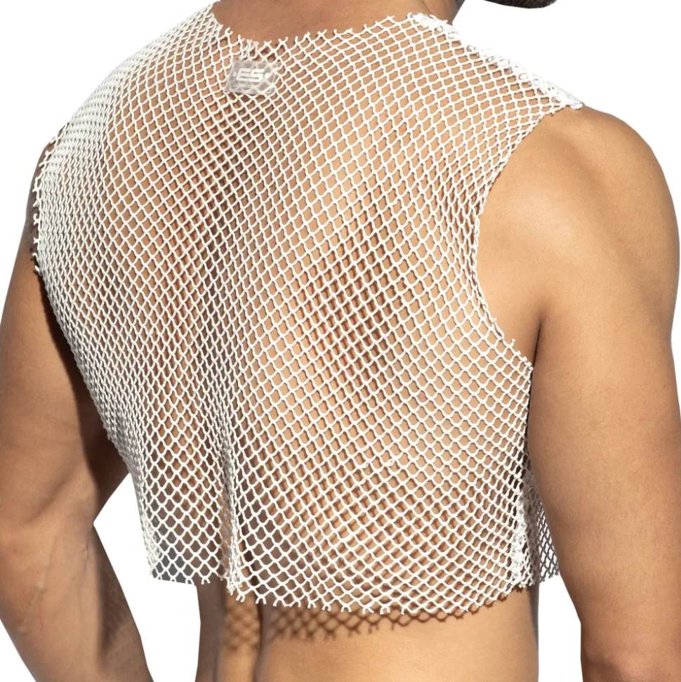Débardeur très sexy en résille extensible et robuste à maillage large, façon filet de pêche. Finitions brutes. Coupe ajustée et raccourcie pour dévoiler vos abdos. Logo ES Collection en silicone dans le dos.