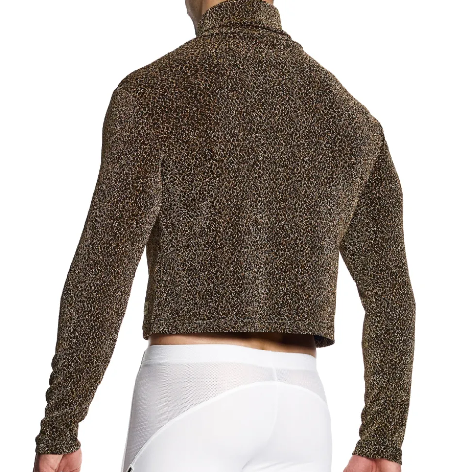 Top très glamour en microfibre tricotée avec des fils de Lurex qui lui confèrent un aspect métallique brillant. Coupe raccourcie pour dévoiler vos abdos. Manches longues et col roulé. Etiquette métallique signée Modus Vivendi.