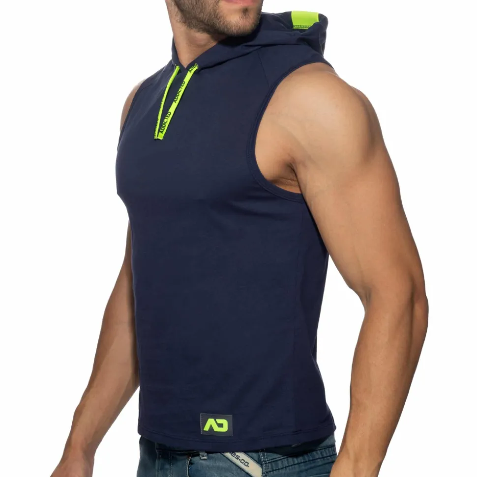 Débardeur sport en pur coton doux et confortable. Coupe ajustée pour mettre en valeur votre musculature. Bande signée Addicted sur la capuche. Détails de couleur fluo. Cordon de serrage. Logo AD en silicone.