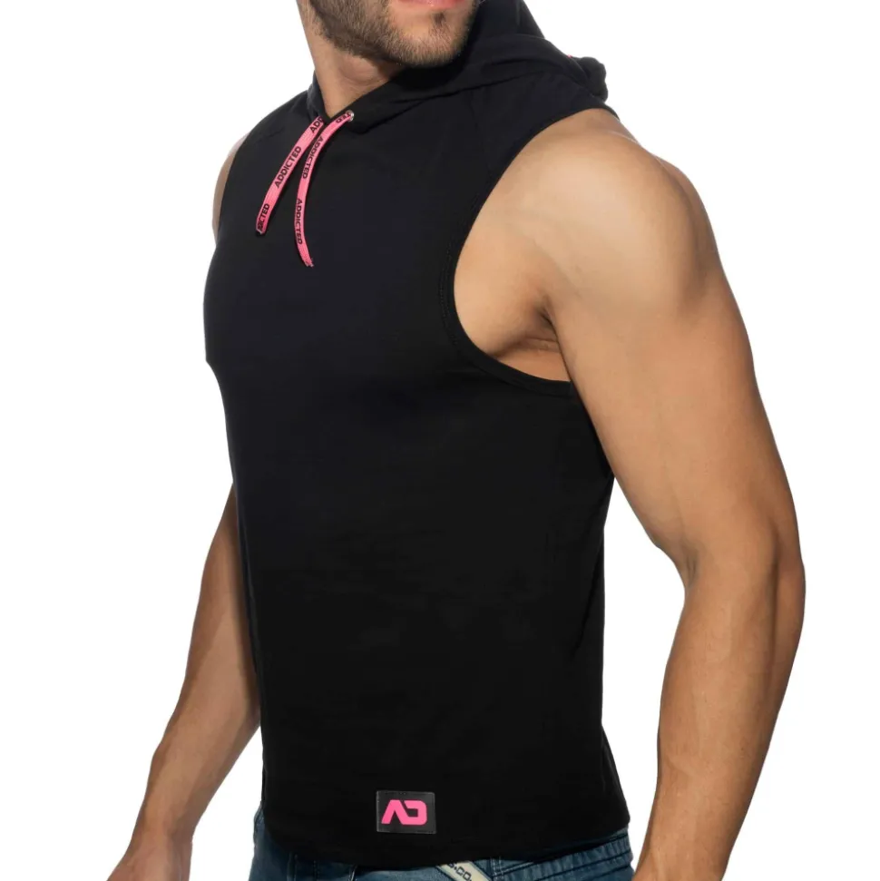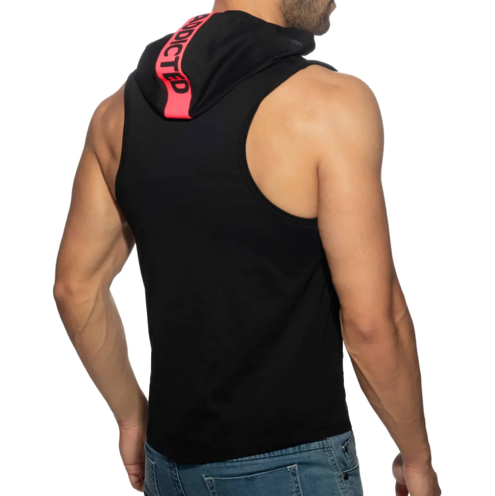 Débardeur sport en pur coton doux et confortable. Coupe ajustée pour mettre en valeur votre musculature. Bande signée Addicted sur la capuche. Détails de couleur fluo. Cordon de serrage. Logo AD en silicone.