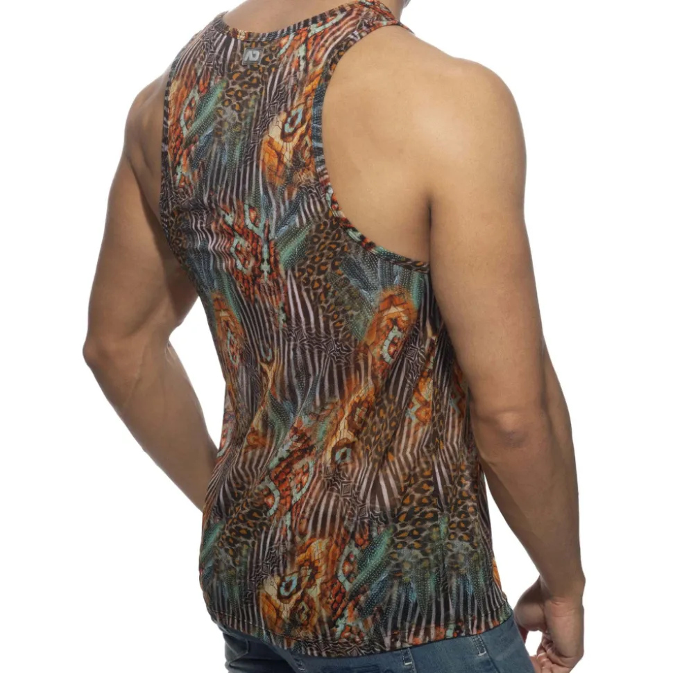 Débardeur en microfibre ultra légère et respirante imprimée d’un motif animal très tendance. Coupe ajustée. Col rond.