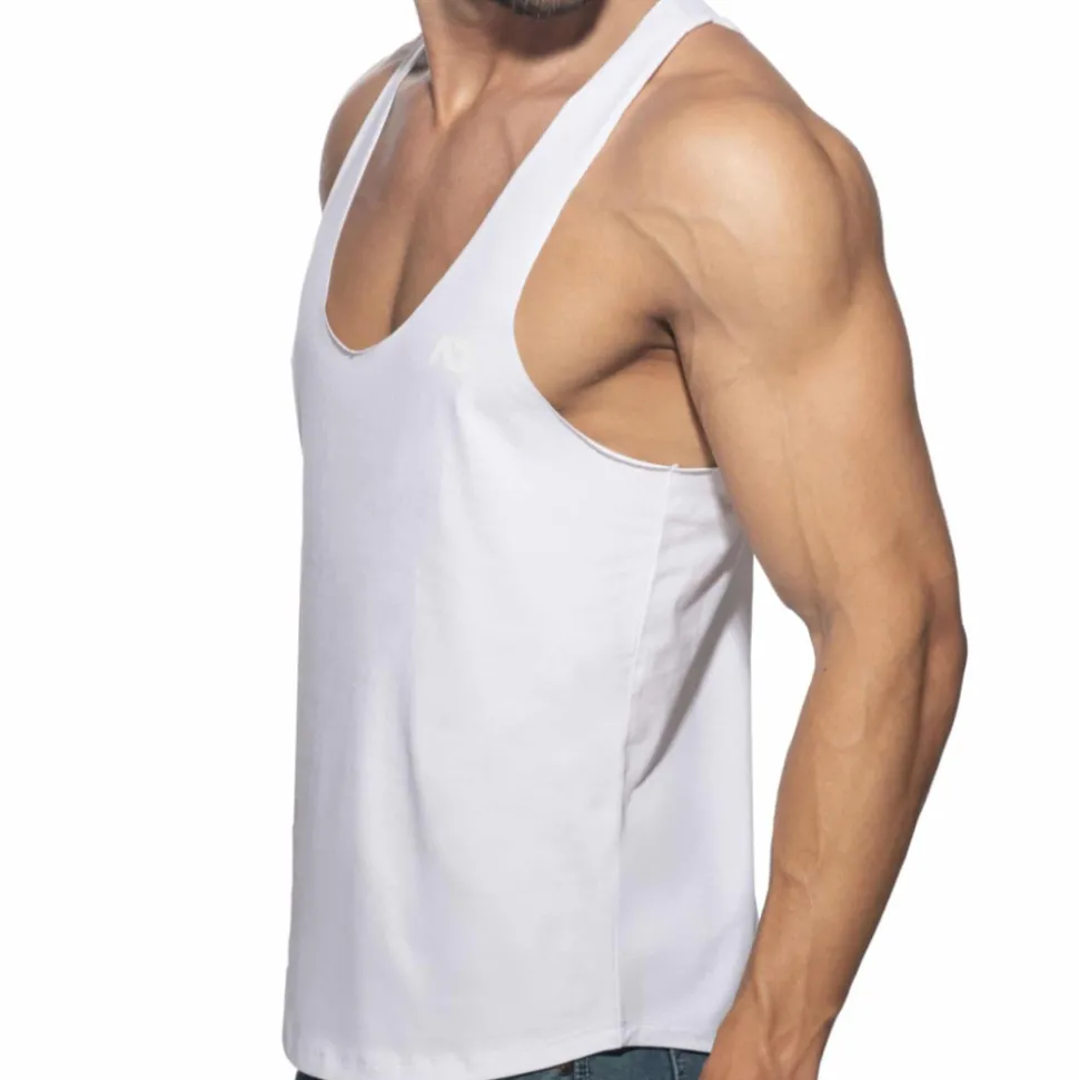 Débardeur en coton léger et respirant, idéal pour le sport. Découpes brutes sans couture. Coupe courte et arrondie en bas, pour tomber parfaitement sur un pantalon. Col en U profond. Dos nageur. Logo imprimé sur la poitrine et dans le dos.