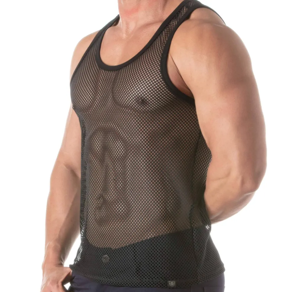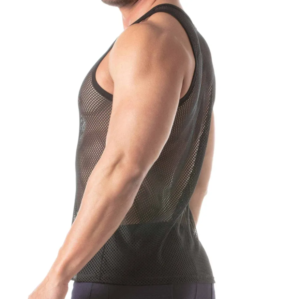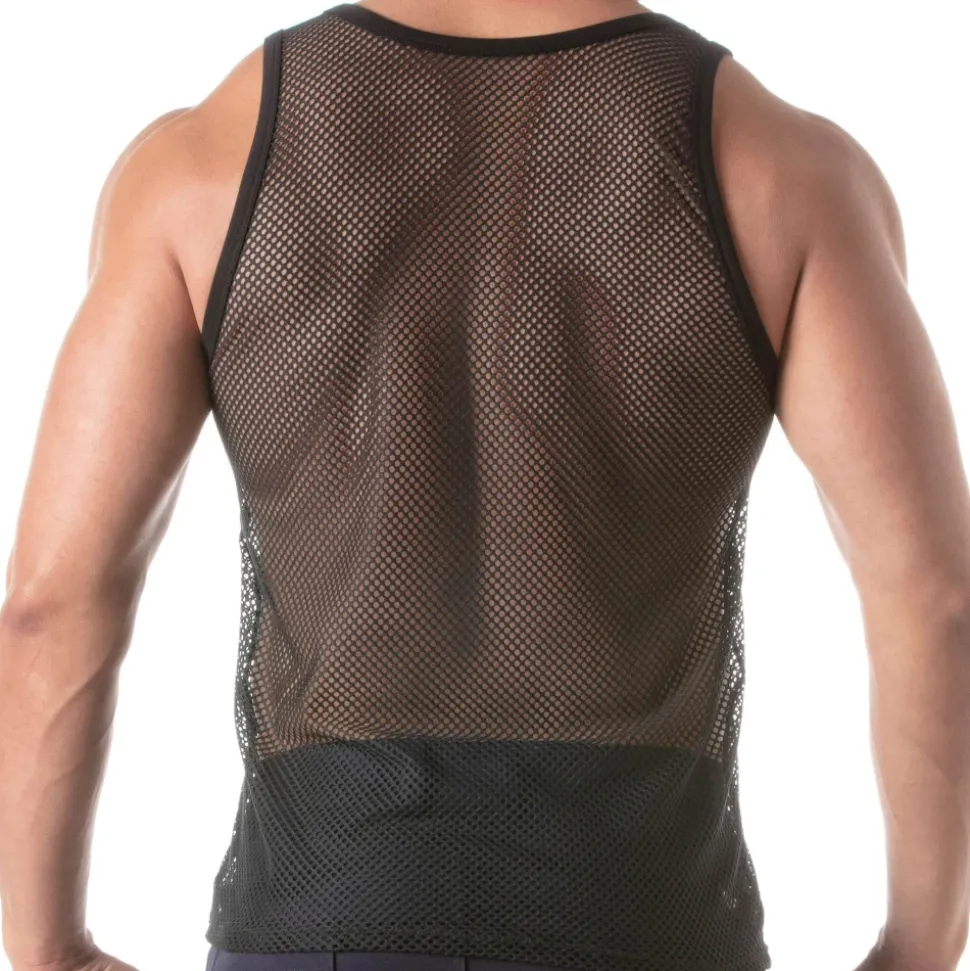 Débardeur très sexy en résille à maille large, qui ne laisse pas grand-chose à l’imagination. Etiquette logo TOF Paris cousue en bas à gauche. Fabrication française.