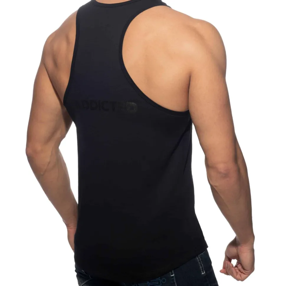 Débardeur 100% coton, sexy et confortable, idéal pour le sport. Coupe ajustée avec dos nageur et col en U profond. Imprimé Addicted ton sur ton sur la poitrine gauche et dans le dos.