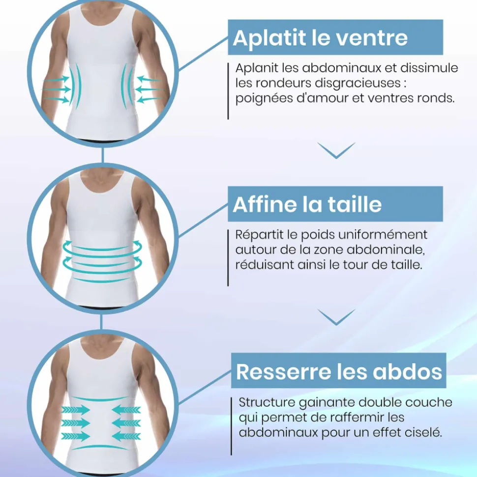 Débardeur amincissant, dont la structure gainante double couche affine immédiatement la taille. Conçu en microfibre hautement extensible et respirante pour un usage au quotidien, comme pour la pratique sportive. Compression forte qui aplanit les abdominaux et dissimule les rondeurs disgracieuses. Grâce à son encolure large, il reste invisible sous votre chemise, pullover ou t-shirt.