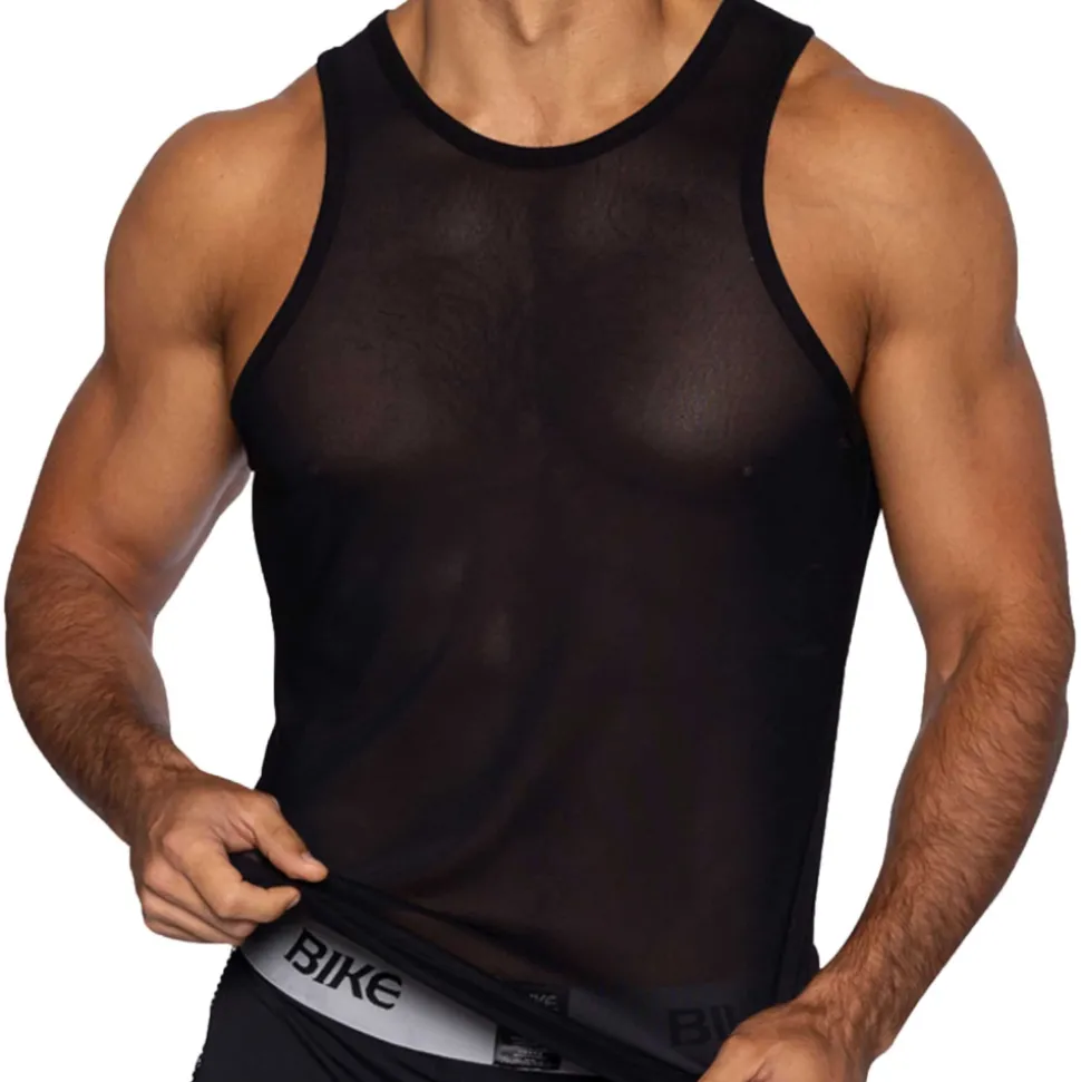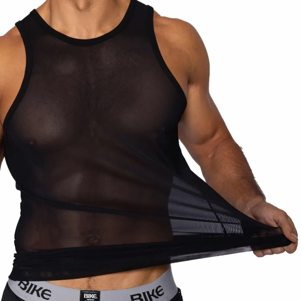 Débardeur sexy en fine résille transparente, légère et respirante. Coupe ajustée. Col rond.