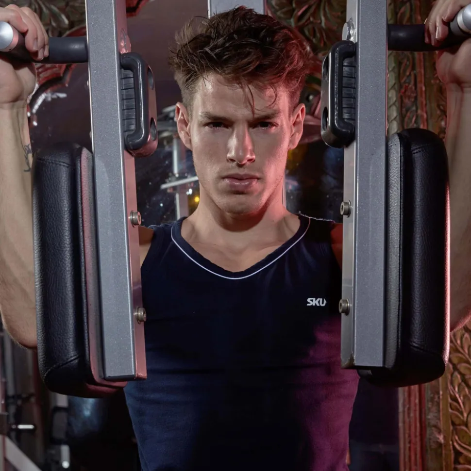 Débardeur sport et sexy en coton premium doux et extensible de couleur intense. Cintré juste comme il faut, il valorisera votre musculature sans gêner vos mouvements. Coupe courte et arrondie en bas, pour tomber parfaitement sur un pantalon. Le col rond est subtilement souligné par un liseré de couleur contrastée. Logo SKU sur la poitrine.