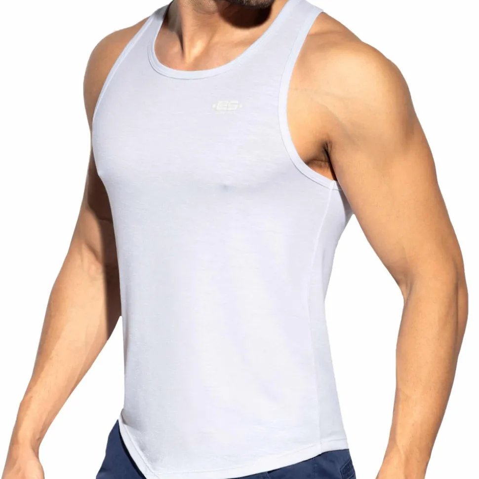 Débardeur ajusté en microfibre fraîche et respirante de couleur unie. Coupe originale en V sur la partie inférieure. Logo ES Collection sur la poitrine.