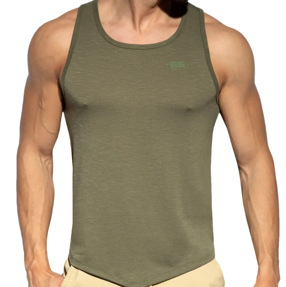 Débardeur ajusté en microfibre fraîche et respirante de couleur unie. Coupe originale en V sur la partie inférieure. Logo ES Collection sur la poitrine.